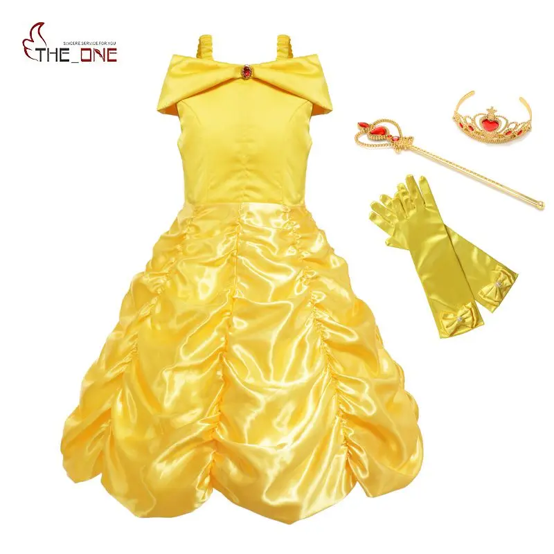 . Achat MUABABY Filles Belle Robe up Princesse Costume Enfants Off Épaule Layered Jaune Parti robe de Bal Carnaval Enfants Cosplay Robe Pas Cher Prix.