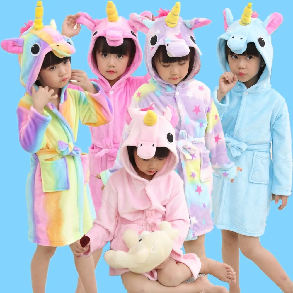 Acheter UBathrobes pour Garçons Filles Pyjamas Bébé De Bain Robe Arc En Licorne Motif Hoodies Robes Enfants vêtements de Nuit Pour Enfants Peignoir Costumes Pas Cher En Ligne