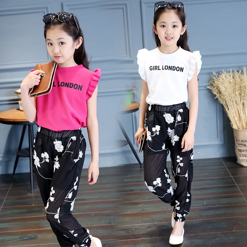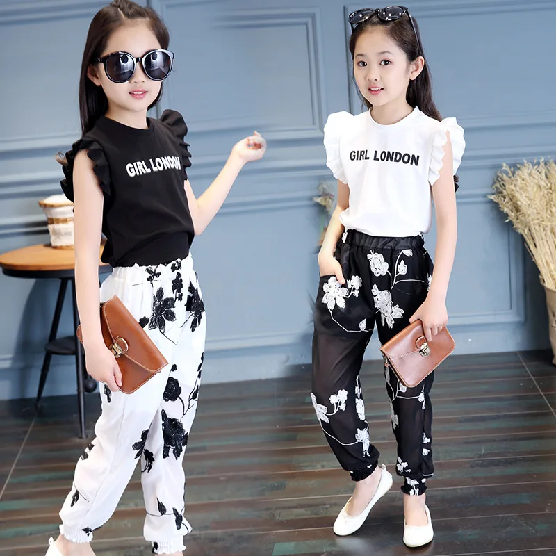 Acheter Meilleur Bébé Filles Vêtements 2018 Été Nouveau Style De Mode Broderie Fleur T shirt + Maille Pantalon Doux Tendance Deux Ensembles Pas Cher Prix.
