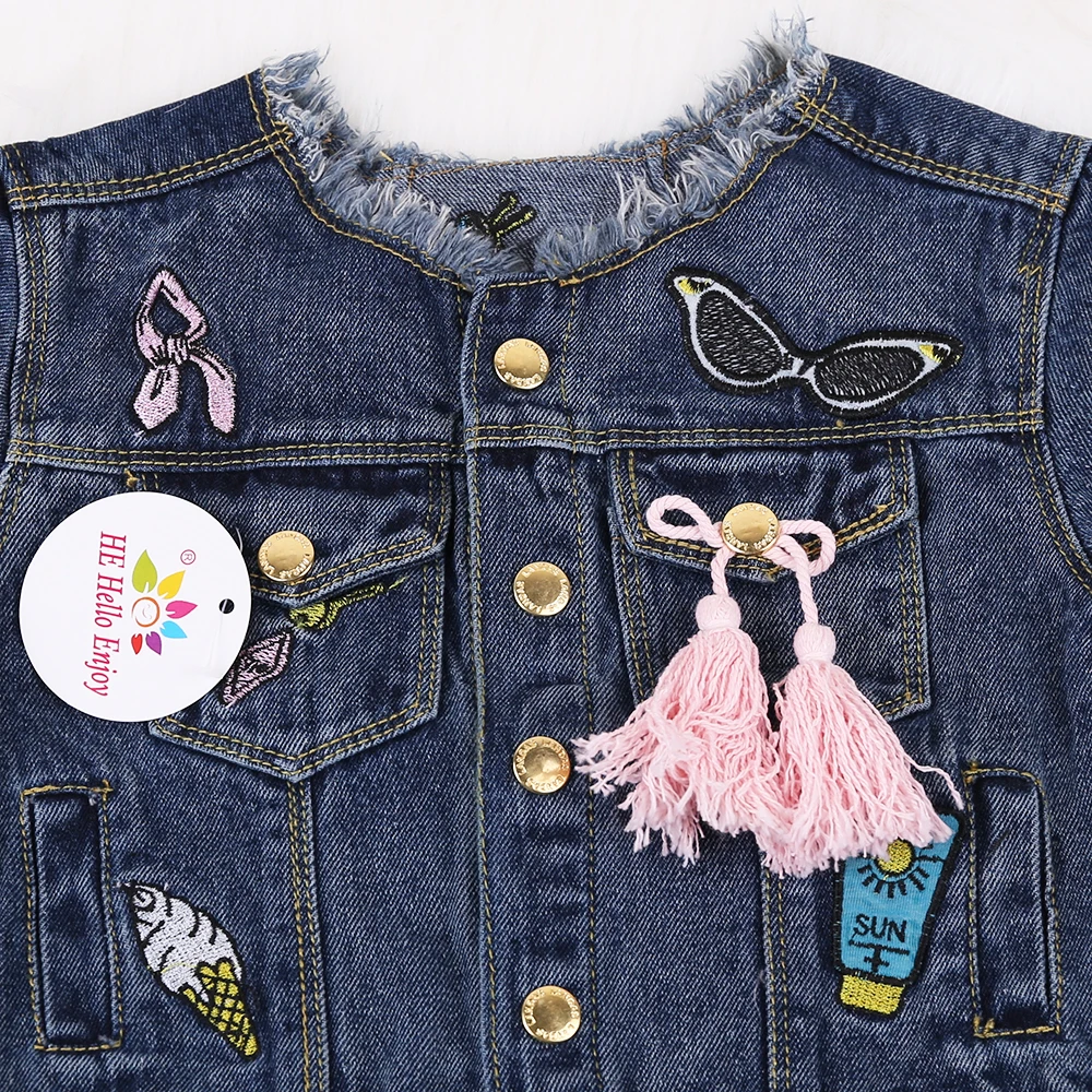 Vente Meilleur IL Bonjour Profiter Bébé Filles Vestes Manteaux de Bande Dessinée Graffiti Broderie Enfants Filles Enfants Denim Veste Automne Hiver Survêtement 2018 Pas Cher En Ligne.