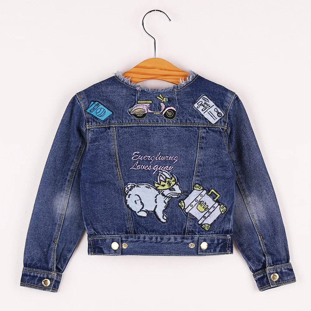 Achat IL Bonjour Profiter Bébé Filles Vestes Manteaux de Bande Dessinée Graffiti Broderie Enfants Filles Enfants Denim Veste Automne Hiver Survêtement 2018 Pas Cher En Ligne
