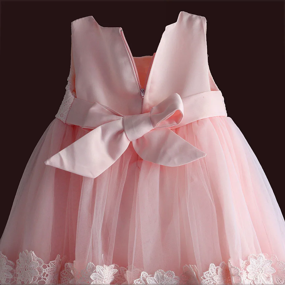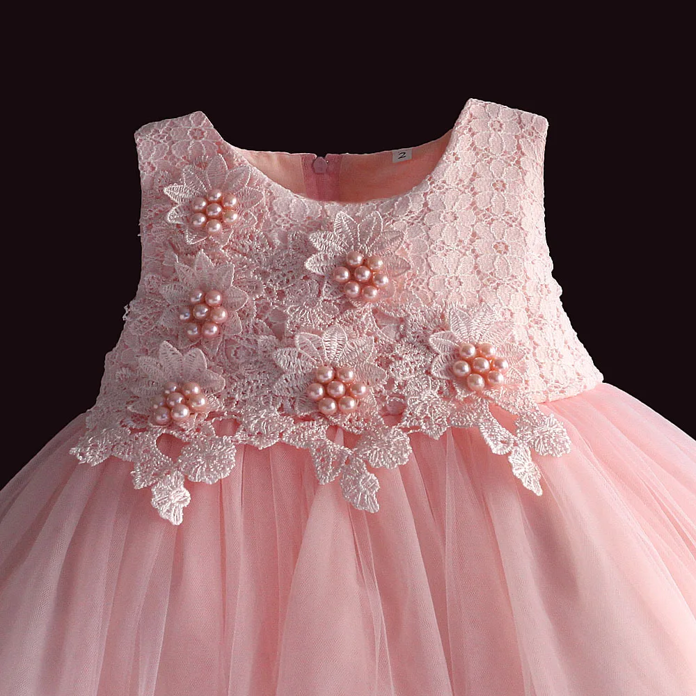 Acheter Nouveau né bébé fille robe rose dentelle bébé de noce robe de bal perle sans manches filles de noël vêtements robe infantil 6M 4Y Pas Cher Prix