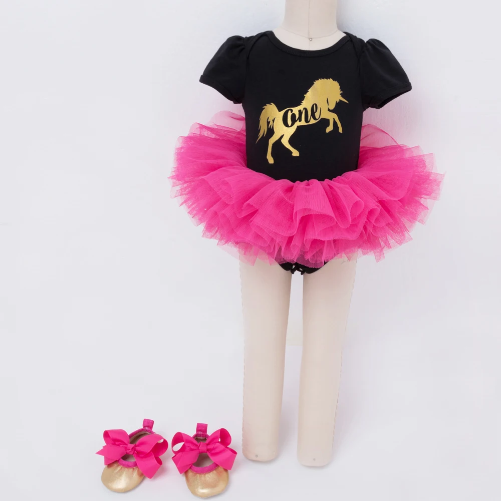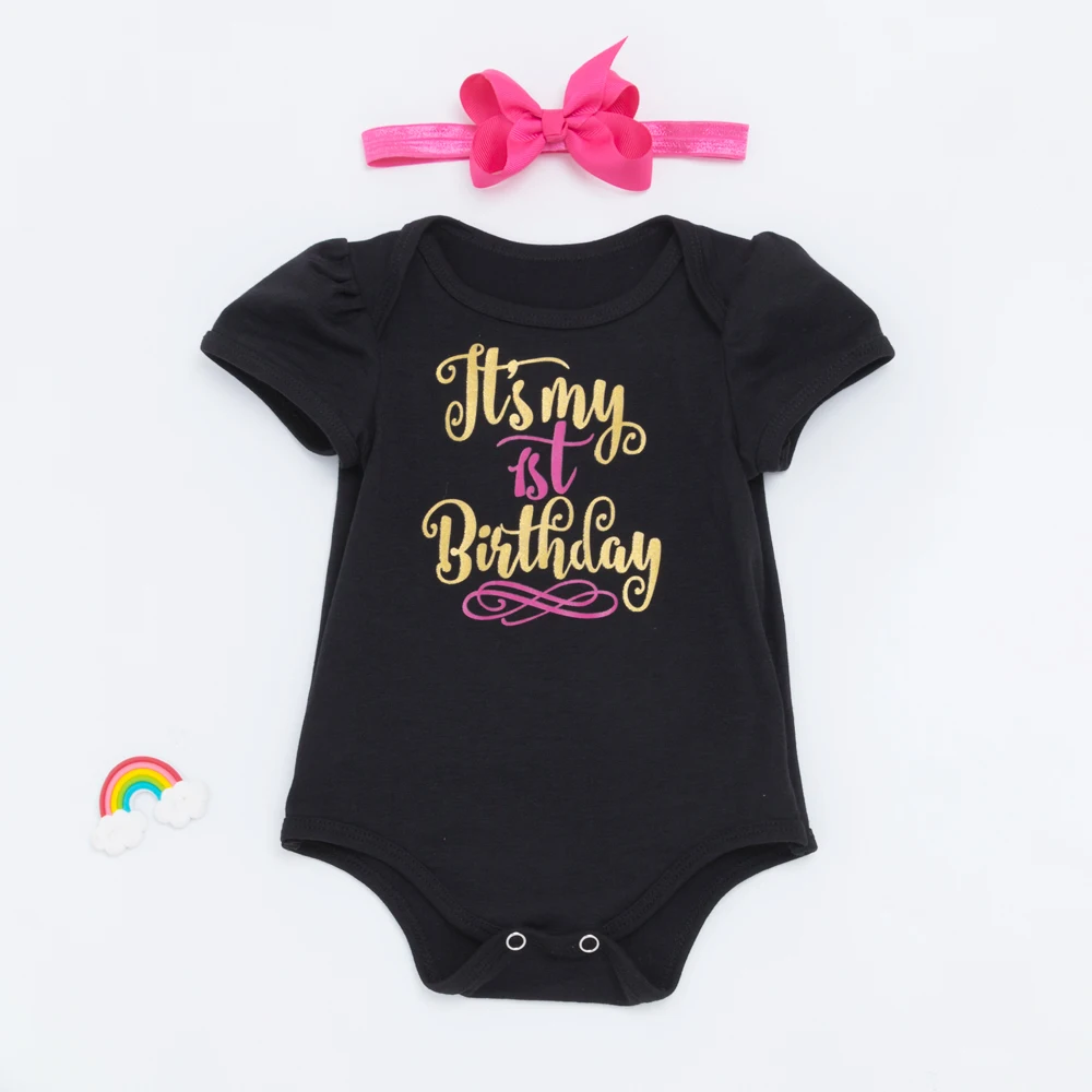 Vente Meilleur 1er Anniversaire Fille Bébé Robe D été 2018 Coton Noir et blanc Barboteuse Tutu Robes Première enfants Infantile pour les Filles Parti vêtements Pas Cher En Ligne.