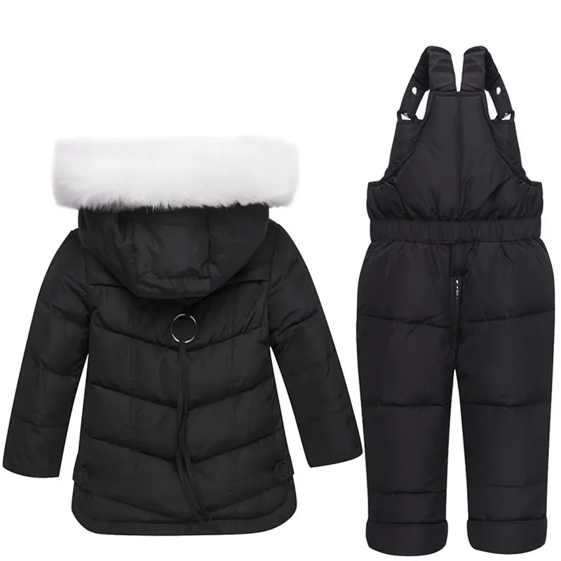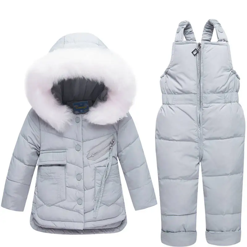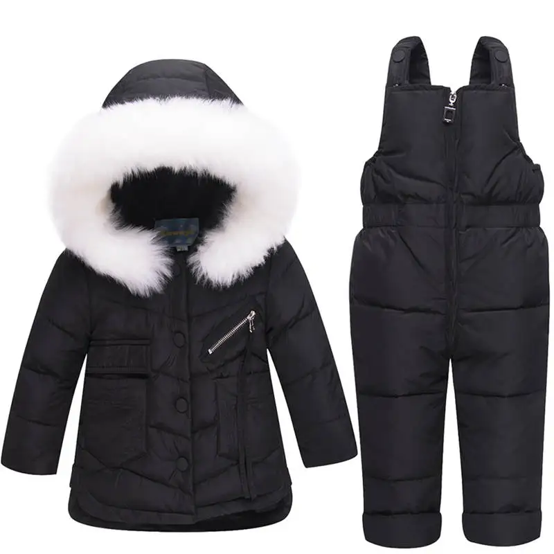 Achat 2018 Hiver Enfants de Vêtements Ensemble Bébé Fille Salopette D hiver Vers Le Bas Veste pour les Filles Garçons Manteau Vêtements Épaissir Ski Neige costume Pas Cher En Ligne