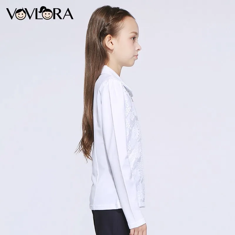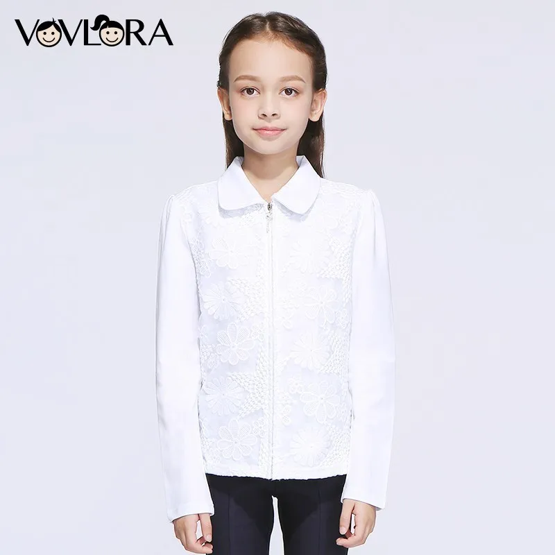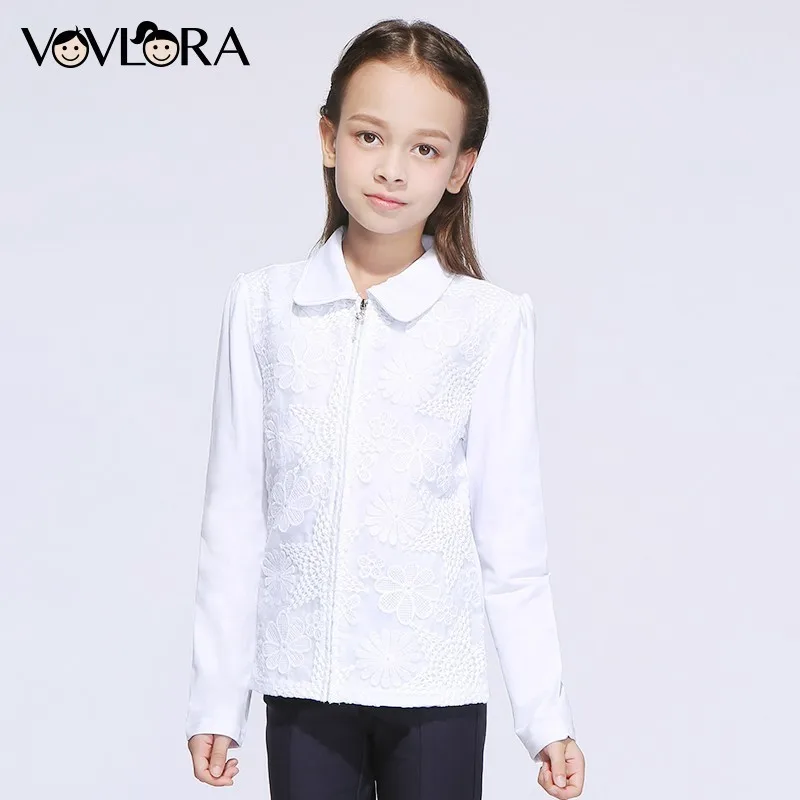 Vente Meilleur Enfants chemise pour les filles école blouses dentelle blanc coton manches longues turn down collar zipper automne 2018 taille 7 8 9 10 11 12 ans Pas Cher En Ligne.