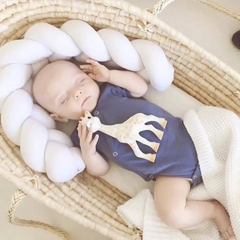 Vente 100 cm 200 cm Nouveau Né Lit Bébé Pare chocs Infantile Chambre Décor Lit Protecteur Pacification Jouet Pur Couleur Tissage Noeud pour enfants Literie Pas Cher Prix