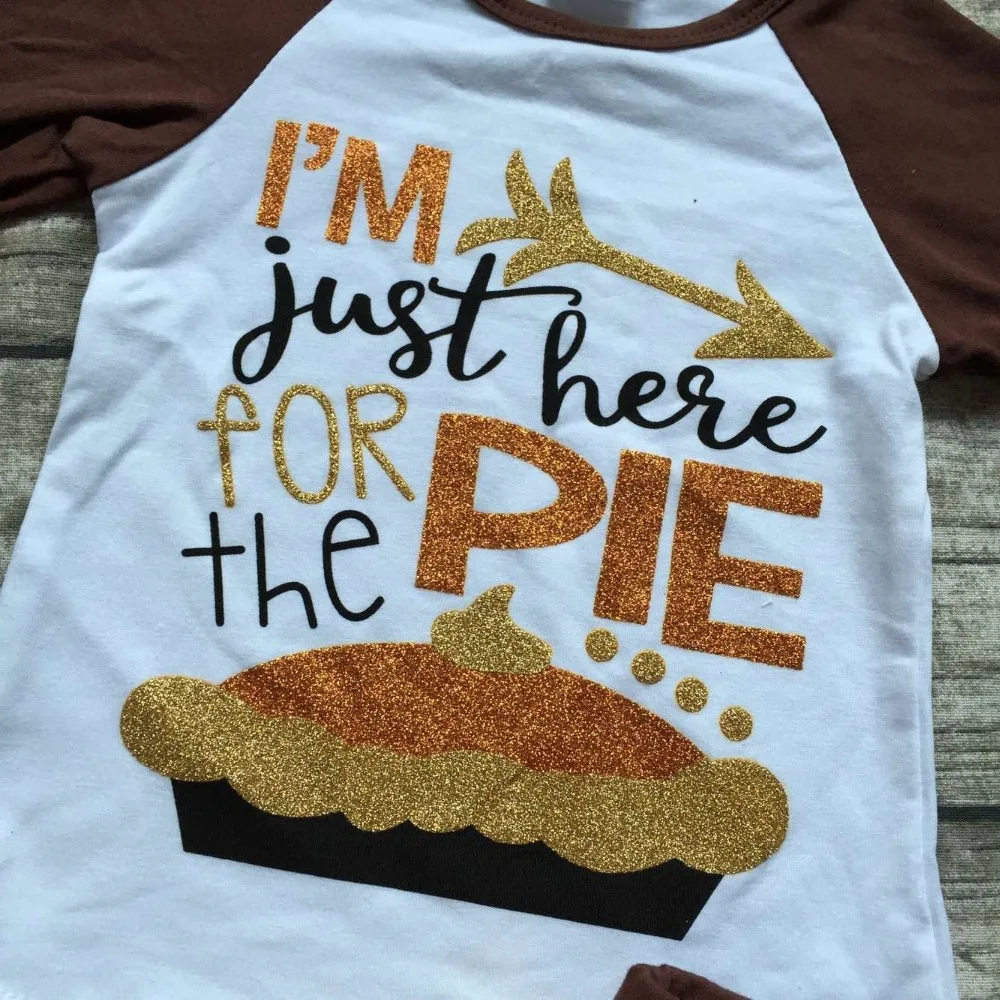 Acheter Meilleur Filles automne boutique vêtements filles Je suis juste ici pour la tarte vêtements filles top avec sequin jupes ensembles avec accessoreis Pas Cher Prix.