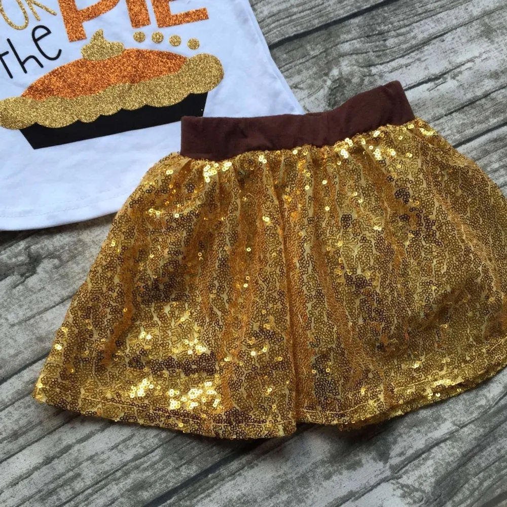 Acheter Filles automne boutique vêtements filles Je suis juste ici pour la tarte vêtements filles top avec sequin jupes ensembles avec accessoreis Pas Cher En Ligne